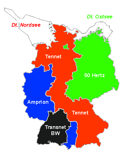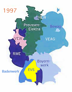 Bis 1997 gab es in Deutschland neun Übertragungsnetzbetreiber und neun Regelzonen. In den folgenden fünf Jahren verringerte sich diese Zahl auf vier. Bis 2010 bekamen drei davon neue Namen. |