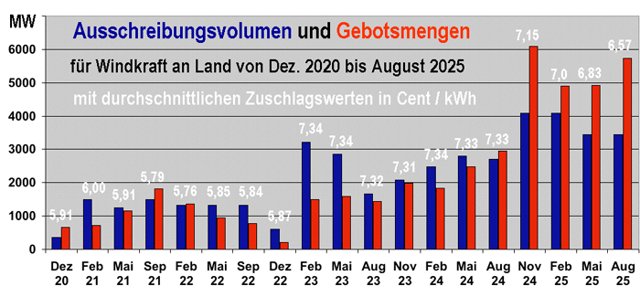 Unter der Überschrift "Seit vier Gebotsrunden sinkende Zuschlagswerte" veröffentlichte die Bundesnetzagentur am 24. September das Ergebnis der 38. Ausschreibung für Windkraftanlagen an Land, die zum 1. August stattfand. "Der Gebotstermin war erneut stark überzeichnet", stellte BNA-Präsident Klaus Müller zufrieden fest. "Die eingereichte Gebotsmenge von mehr als 5,7 GW ist der bisher zweithöchste Wert in einer Ausschreibung. Die Zuschlagswerte sanken abermals gegenüber der Vorrunde".